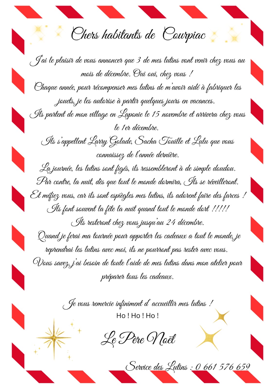 Le Conseil Municipal de Courpiac et l'ensemble de ses associations locales sont ravis d'annoncer la tenue d'un après-midi spécial Noël entièrement dédié aux enfants de notre commune.